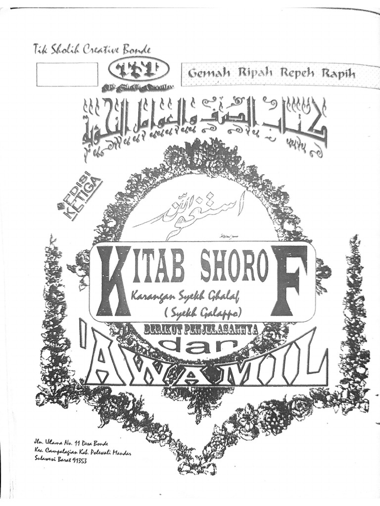Download Kitab Shorof Pdf - Download Buku Shorof Tashrif Pdf Kitab Al Amtsilatu At Tashrifiyyah Situs Pendidikan Islam No 1 - Kitab ini merupakan kitab mata pelajaran wajib untuk santri kelas dua di dayah aceh.. Kitab amtsilatu tashrifiyah, merupakan kitab contoh wazan dalam ilmu tashrif.kitab ini ditulis oleh k.h maksum ali. Download gratis kitab kuning pdf lengkap (termasuk kitab. Adapun menurut istilah, shorof adalah berubahnya bentuk asal pertama yang berupa fi'il madhi, menjadi fi'l mudhori, menjadi mashdar, isim fa'il, isim maf'ul, fi'il amr, fi'il nahi, isim jaman, isim makan sampai isim alat. Kitab ini merupakan kitab mata pelajaran wajib untuk santri kelas dua di dayah aceh. Penulis dapat menyelesaikan risalah kecil ini yang berisi ringkasan dari ilmu nahwu dan shorof yang penulis ambilkan dari beberapa kitab seperti mutammimah al jurumiyah, al imrithi, alfiyah ibnu malik, al amtshilah at tasrifiyah, qowa'idul i'lal, amsilati dan qowa'idus shorfiyah.